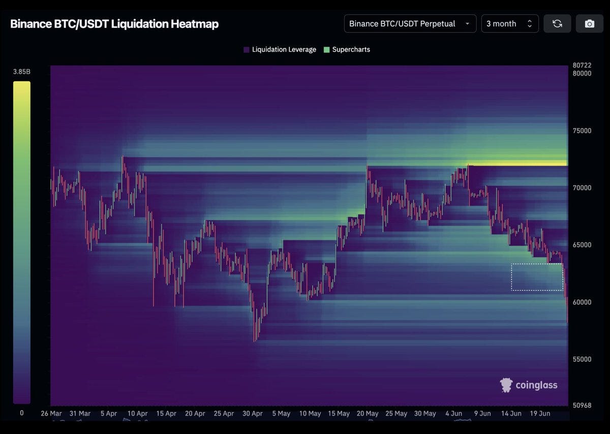 This chart is supposed to hint at the price levels at which large-scale liquidation events may occur.