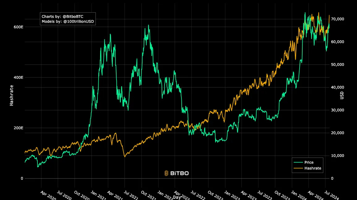There is a positive correlation between the price of mining computers and the price of Bitcoin.