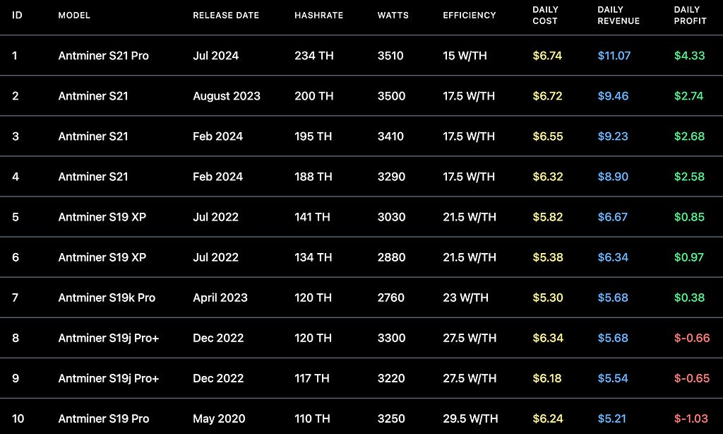 Note, machines are ramping up in hashrate specs and energy efficiency.