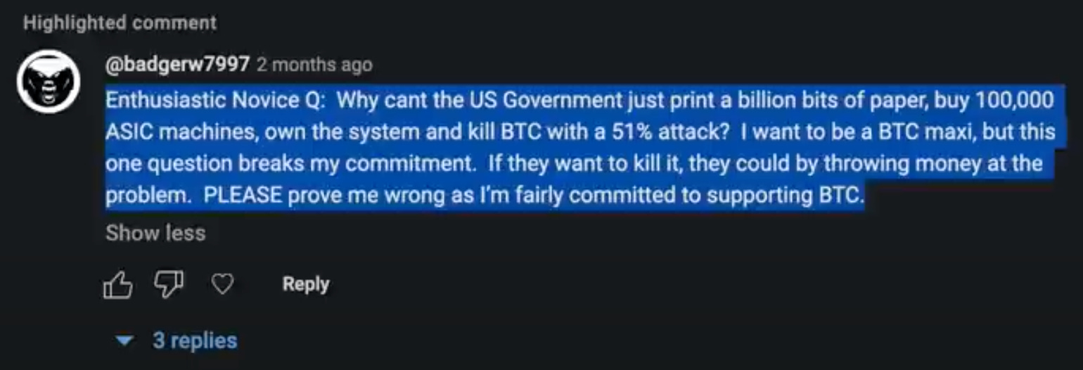 So why can’t the US print billions of dollars, accumulate millions of ASICs, and kill BTC?