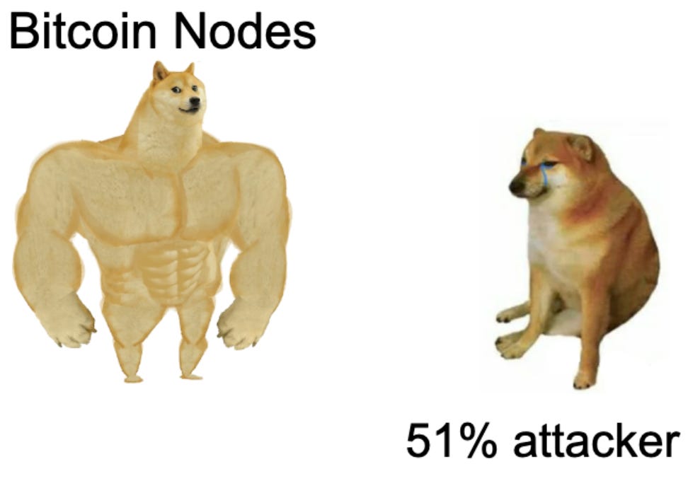 Resource Intensive: To control more than half of the Bitcoin network requires a massive amount of computational power and energy. This would only be possible resource-wise for a nation-state or several nation-states.