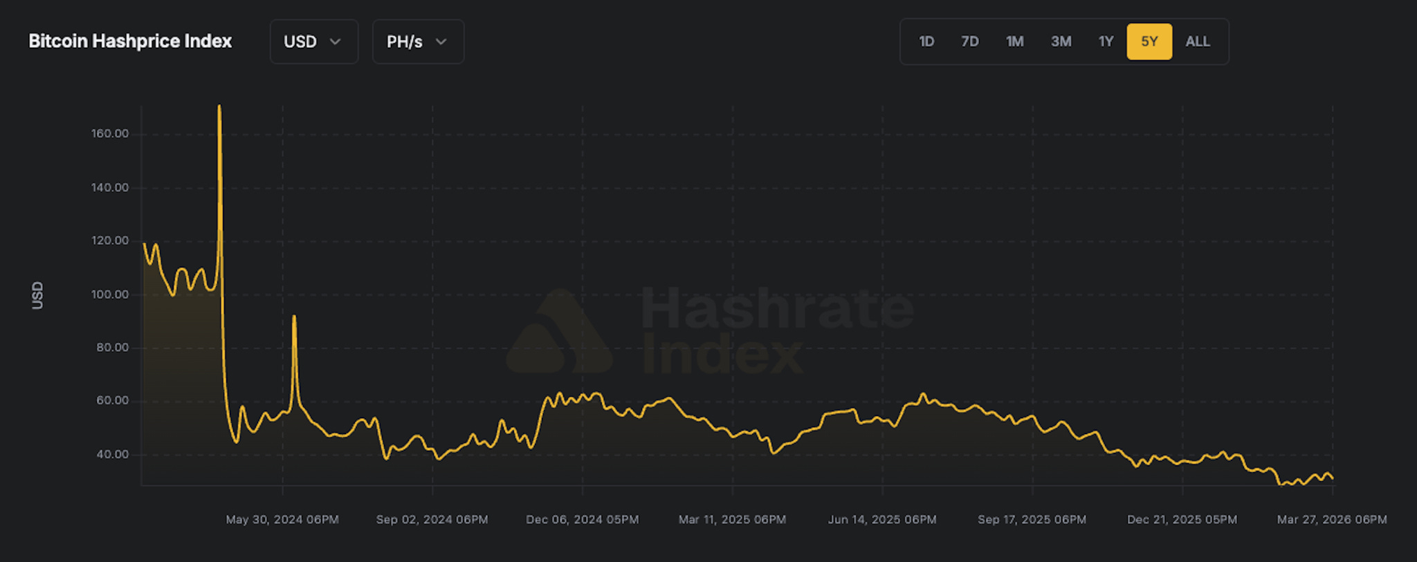 Hashprice dropped 44%, from $50/PH/day to $28/PH/day in February 2026.