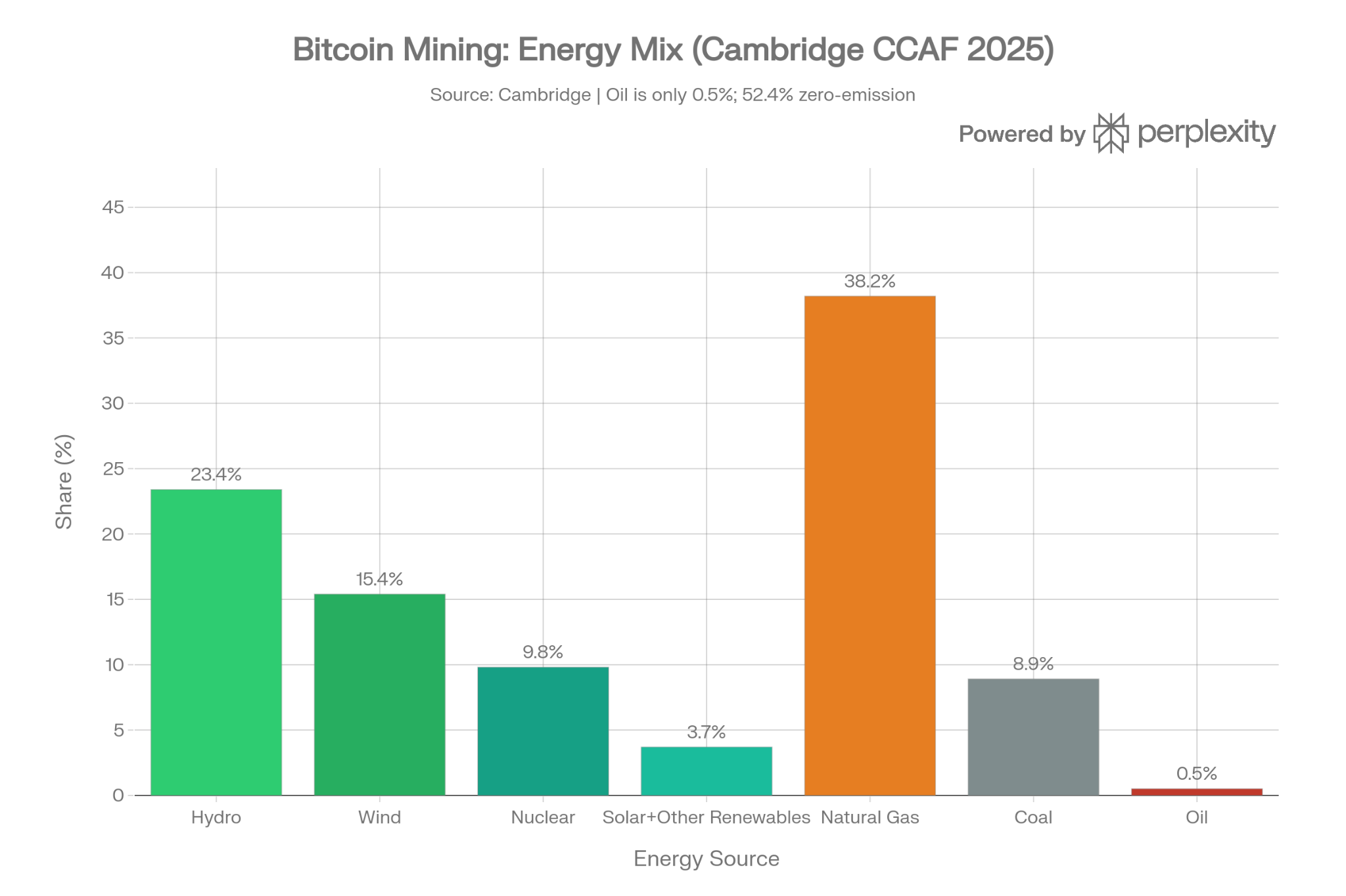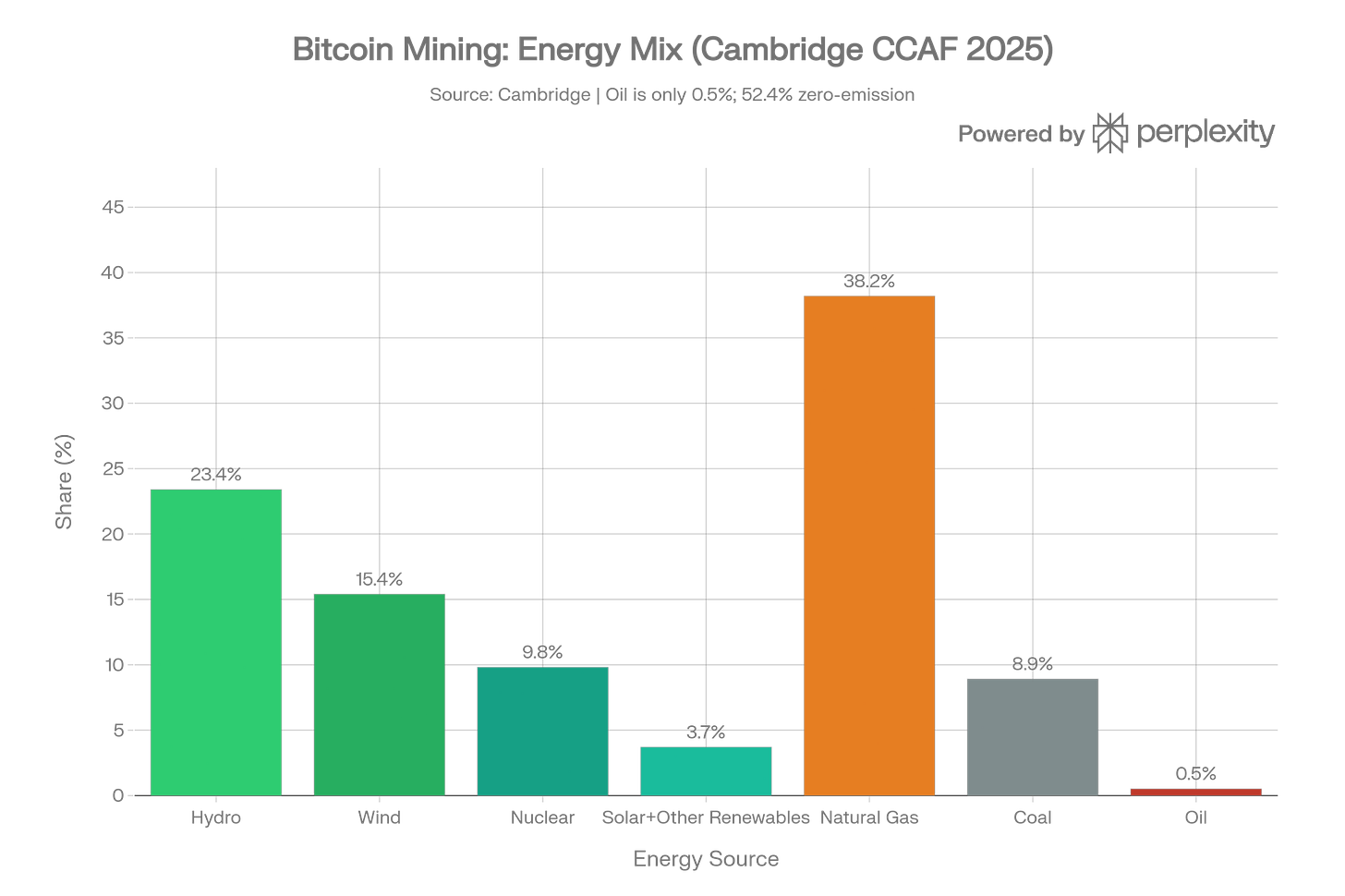 Natural gas represents 38.2% of Bitcoin’s total energy input. It is the single most important fuel for mining. When people say “oil exposure,” they undercount the real risk, which runs through natural gas and US grid prices.