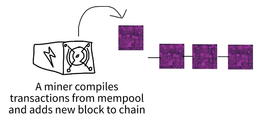 3. Miner finds block and adds aggregated transactions to the official chain.
