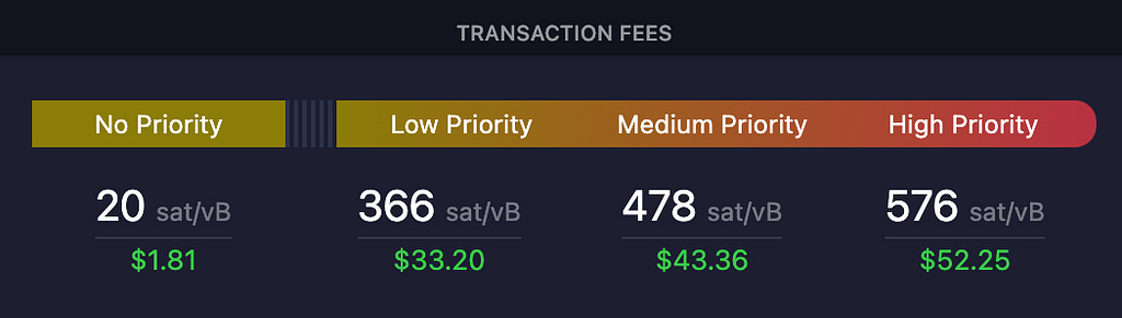 So if your transaction takes up 1000 byes of data, and you are in a rush to get included in the next block, then you would pay 576 sats * 1000 bytes.